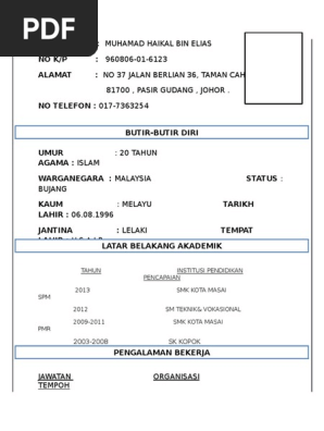 Contoh Resume Simple Yang Sesuai Untuk Anda Memohon Kerja Kilang Myrujukan